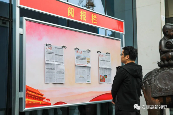 日前,在安康高新區(qū)的市民廣場、政務(wù)中心、公園綠地、大眾餐廳、居民社區(qū)等人口密集區(qū)域,承擔著“黨報指引方向,閱讀增添力量”宣傳教育功能的一個個“閱報欄”,讓廣大市民在享受物質(zhì)生活的同時更具精神追求,成為創(chuàng)建全國文明城市中一道道亮麗的風景。