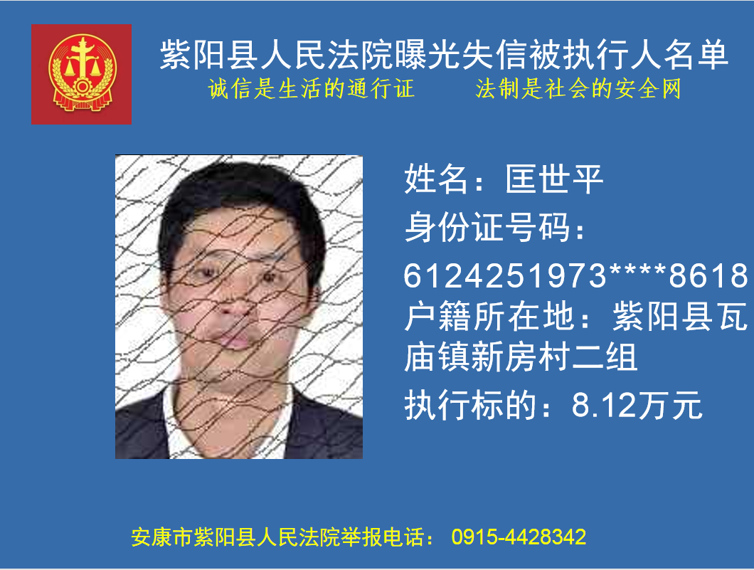 曝光失信 | 紫陽(yáng)縣人民法院:關(guān)于敦促匡世平履行法定義務(wù)的公告