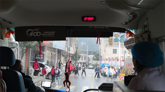 環(huán)顧車內(nèi),面包、牛奶、熱水……這里更像是他們的第二個家。我和司機(jī)師傅開玩笑說:“今天出發(fā)夠早的啊,太陽都還沒上班呢?!彼緳C(jī)輕描淡寫的說:“這算晚的了,以前去更遠(yuǎn)的鎮(zhèn)上,四五點(diǎn)就要出發(fā)?!彼p眼筆直的看向前方,仿佛看見了比路更多的東西,而在我眼里,那不過是車燈照不到盡頭的一片迷霧。