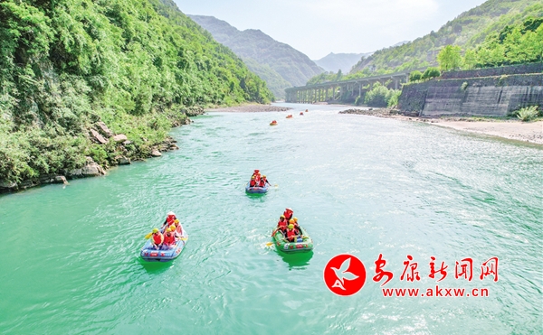 “五一”期間,紫陽縣在任河漂流景區(qū)啟動2023年“夏親水”系列文旅活動。儲茂銀 攝
