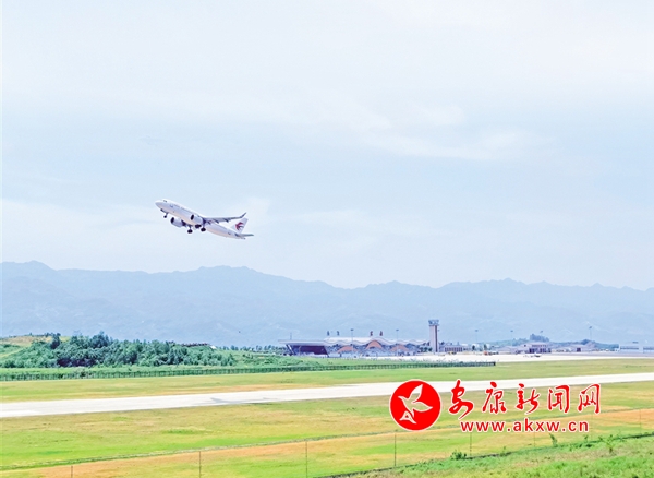 5月1日上午,一架客機(jī)離開安康富強(qiáng)機(jī)場。如今立體的交通網(wǎng)絡(luò)大大方便了安康人出行,同時也方便游客來安康旅游觀光。陳德模 攝