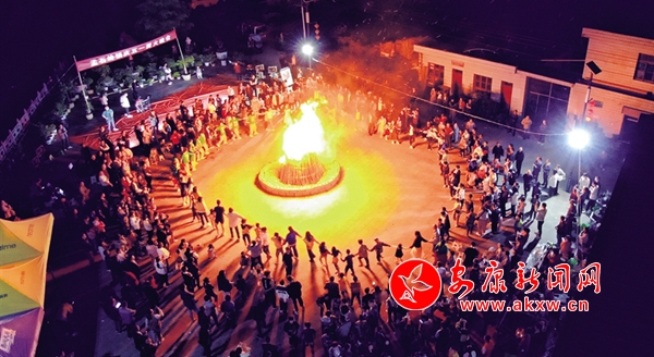 “五一”勞動節(jié)當(dāng)日,在嵐皋縣孟石嶺鎮(zhèn),一場篝火晚會火熱舉行。全鎮(zhèn)干部群眾及外來游客紛紛前來享受頗具地方特色的娛樂活動。楊倩 楊文君 攝