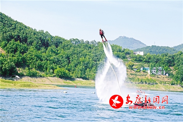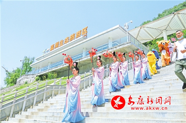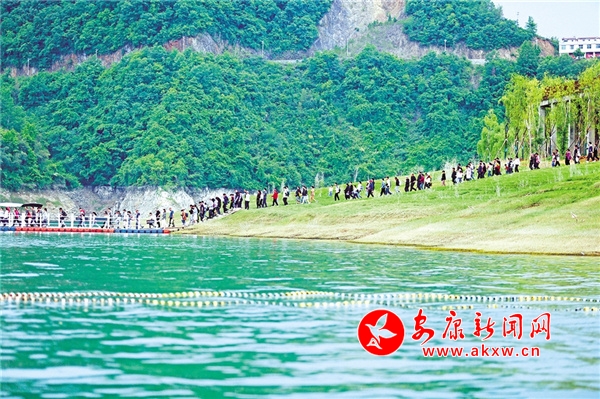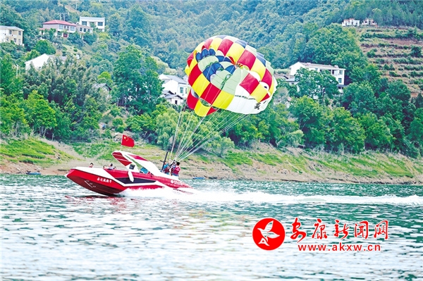 休閑勝地翠屏島,最大的亮點是玉清橋的彩虹瀑布,游客從橋下經(jīng)過,感受“瀛湖之水天上來”的曼妙,這也是瀛湖為游客送上的初夏第一絲清涼。橋頭幸福的天梯、鳥巢,成為排隊拍照的絕佳點位。運動場上,滾鐵環(huán)、射箭、投壺、打籃球,讓游客流連忘返。兒童樂園旁,微型爆米花機(jī)勾起了孩子們參與的興趣,彩繪激發(fā)了孩子們的繪畫熱情。瀛湖水上嘉年華,精彩刺激的水上項目帶給游客酣暢的體驗,游客紛紛直呼“過癮”!
