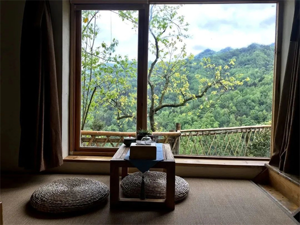 南山云見民宿共有11個(gè)陜南民居,集茶舍、住宿、餐廳、書院、美術(shù)館為一體,穿梭于鳳凰山中的康養(yǎng)文化健身步道,宛如一條絲線,串聯(lián)了大南溝的龍?zhí)?、龍隱谷、凈春山、講經(jīng)臺(tái)、逍遙石、明月寺、南山云見民宿等景點(diǎn)。