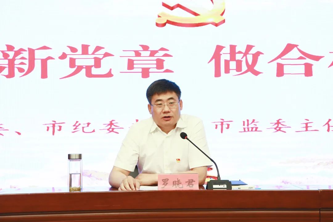 按照全市紀檢監(jiān)察干部隊伍整頓工作安排,6月27日,市委常委、市紀委書記、監(jiān)委主任羅曉君以《學好新黨章 做合格黨員》為題,為市紀委監(jiān)委機關、派駐機構紀檢監(jiān)察干部和巡察機構干部講專題黨課。省紀委監(jiān)委第七督導組到會指導。