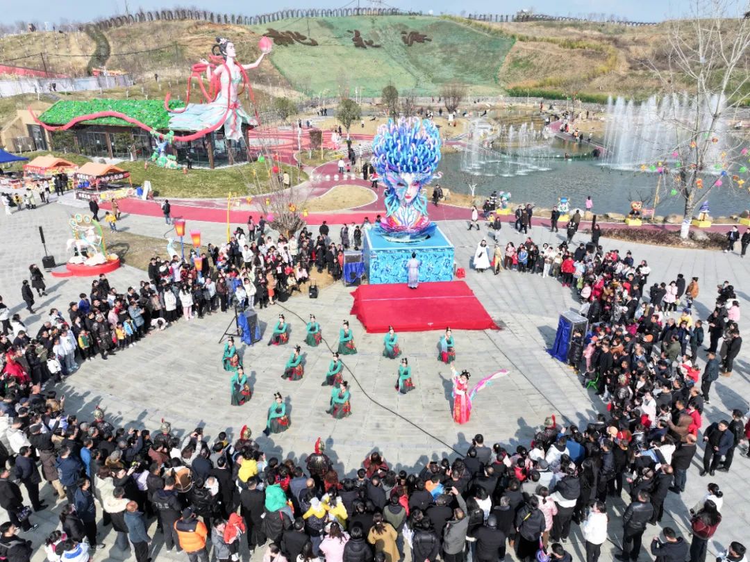 豐收大秧歌、龍騰腰鼓隊(duì)、喜慶蓮響、彩船、花轎大聯(lián)歡、社火、小場(chǎng)子戲等精彩的傳統(tǒng)民俗節(jié)目在桃花源相繼上演。新穎的編排、精彩的表演,令現(xiàn)場(chǎng)游客大飽眼福,叫好聲、喝彩聲此起彼伏。當(dāng)天近25000余名市民游客前往桃花源觀看表演、打卡游園,處處洋溢著“歡歡喜喜過大年”的節(jié)日氣氛。