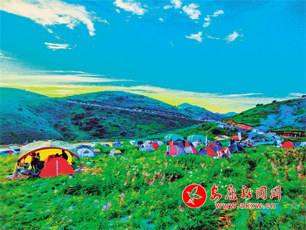 化龍山草甸如今是露營網(wǎng)紅打卡地。王韜 攝