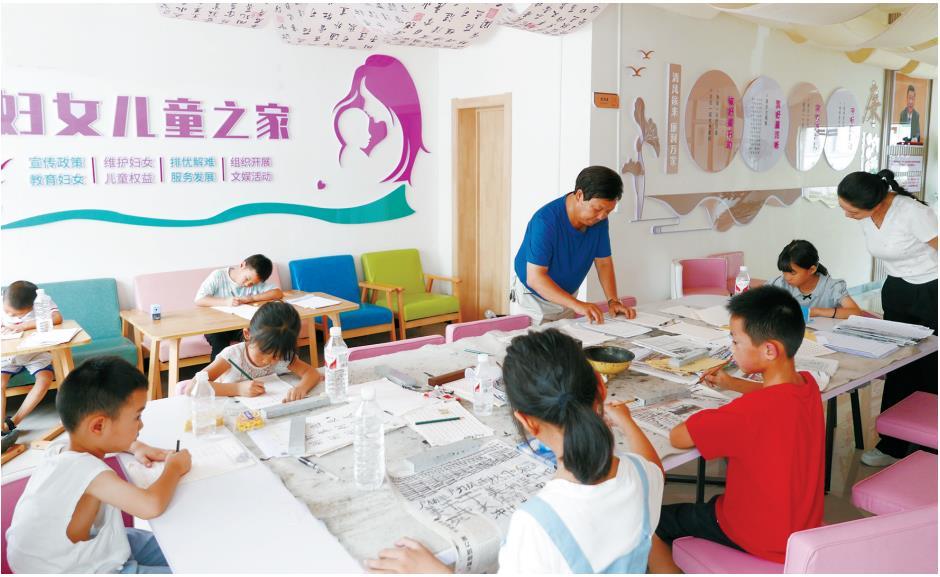 8月12日,塘坊壩社區(qū)聯(lián)合子中心,兒童在練習(xí)書(shū)法。