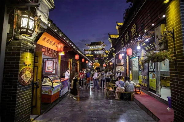 飯后,我們就著清涼的晚風,隨著熙熙攘攘的人流,欣賞古城的夜景。眼前這街巷、這古塔,這城樓、這游人,這燈火輝煌,仿佛都已不是現(xiàn)實中的實物,宛若穿越時空隧道的精靈,在漫無涯際的天地里浮游。迎面走過來七八個穿漢服的小姑娘,手里都提著一盞五顏六色的琉璃燈,閃閃爍爍,熠熠生輝,為這美好的夜晚平添了一份古意,一份韻味。