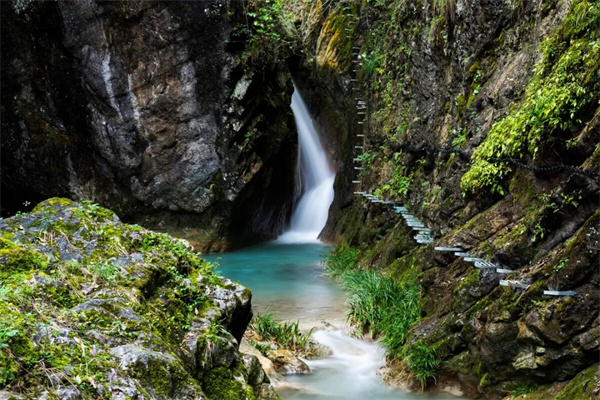 正說著,老太太風塵仆仆地回來了。交談中我問她有沒有拍幾張瀑布的照片,她說拍了很多小視頻和照片。在她的手機里,我看到了“雁山瀑布”如天馬行空的銀河,優(yōu)雅地在空中舞動,散發(fā)著靈動的清新,讓人心曠神怡;看到了瀑布群如同一幅幅流動的畫卷,從高高的崖壁傾瀉而下,水花飛濺,在陽光下熠熠生輝,閃爍著晶瑩剔透的光芒;看到了“蓮花石?!豹q如蓮花般綻放于溪谷,奇石林立,溪澗飛流,蒲草蔥郁,蔚為壯觀;看到了“眾石飛泉”宛如銀龍勁舞,飛落碧潭,濺起點點水花,曼妙成躍動的精靈,美輪美奐,姿態(tài)萬千。