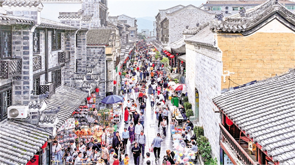 “原來(lái)這條老街由于年久失修,破舊、環(huán)境差,游客寥寥無(wú)幾。后來(lái),縣上整體對(duì)老街的形態(tài)、文態(tài)、業(yè)態(tài)進(jìn)行優(yōu)化提升?,F(xiàn)在,這里環(huán)境好、配套全、服務(wù)優(yōu),周末節(jié)假日,我們社區(qū)的民樂(lè)隊(duì)、合唱團(tuán)、旗袍協(xié)會(huì)等文藝社團(tuán)也在老街文化集市活動(dòng)起來(lái),吸引了不少游客?!笔h城關(guān)鎮(zhèn)老城社區(qū)黨總支書(shū)記劉世元變身“導(dǎo)游”現(xiàn)場(chǎng)推介。