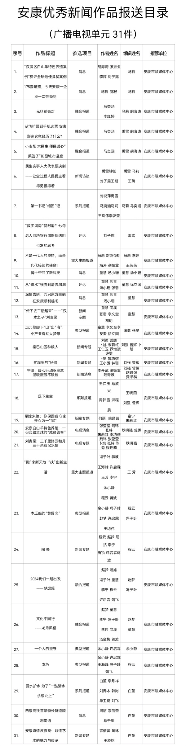 安康市融媒體中心關(guān)于報(bào)送2024年度安康優(yōu)秀新聞作品的公示