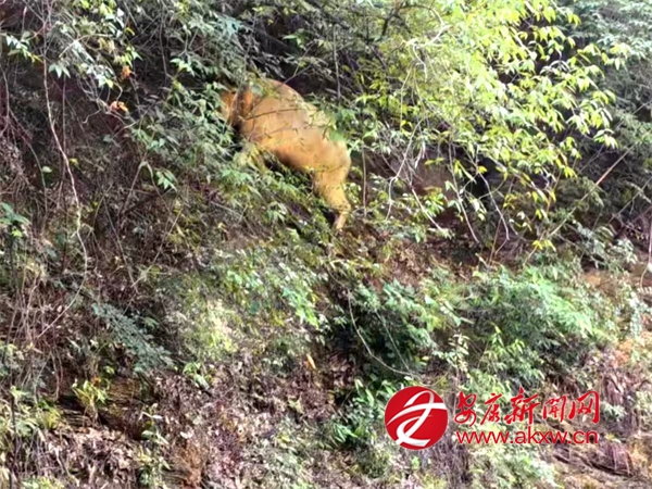 “猛然一看像只羊,仔細(xì)端詳又不對,那腳長得跟牛蹄似的?!被貞浧甬?dāng)時(shí)的場景,王開濤仍難掩興奮。消息一經(jīng)傳開,鎮(zhèn)領(lǐng)導(dǎo)高度重視,即刻組織宣傳、林業(yè)干部趕赴現(xiàn)場。據(jù)王開濤介紹,6月27日上午7時(shí)40分許,他正驅(qū)車前往15組組長家,準(zhǔn)備帶領(lǐng)護(hù)林員開展巡山工作。行至土房溝路段時(shí),路邊護(hù)欄外一個(gè)形似“羊頭”的身影突然闖入眼簾。王開濤急忙剎車,就在停車的剎那,只見這個(gè)“羊頭牛腳”的神秘動(dòng)物利落地躍過護(hù)欄,“咚”地落在路面,還沖著他發(fā)出一聲低沉的“嗷”叫,緊接著身形一閃,以敏捷的身姿竄上溝崖。電光石火間,王開濤迅速掏出手機(jī),接連按下快門,成功抓拍下3張珍貴畫面。