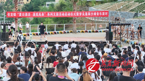 佐龍鎮(zhèn)黨委、政府因勢利導(dǎo),開發(fā)了蓬萊仙境景區(qū)及馬宗村民宿集群,又把河灣變成了露天公共文化場所。他們舉辦的沙灘音樂節(jié),邀請本地的音樂舞蹈愛好者駐場,鼓勵(lì)當(dāng)?shù)厝罕姟⑼鈦碛慰蛥⑴c,以參與活動(dòng)、宣傳活動(dòng)的數(shù)量打卡積分,兌換文創(chuàng)產(chǎn)品和文化禮品。
