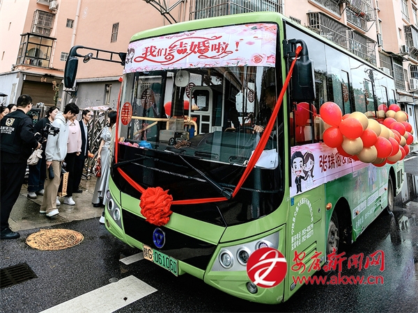 為了讓公交車(chē)更有“婚禮氛圍”,新郎、新娘和親友們一起用氣球、飾品和貼畫(huà)對(duì)車(chē)廂進(jìn)行了簡(jiǎn)單裝飾,既溫馨又不浮夸。10月4日迎親當(dāng)天,精心裝飾的婚車(chē)準(zhǔn)時(shí)到達(dá)目的地。橫幅海報(bào)“我們結(jié)婚啦”與紅繡球貼在公交車(chē)頭,氣球貼滿(mǎn)車(chē)身,將接親的儀式感“拉滿(mǎn)”。新郎、新娘在眾多親朋好友的陪伴下,一起登上這輛“專(zhuān)車(chē)”,駛向名為“幸?!钡南乱徽?。車(chē)廂內(nèi),互動(dòng)節(jié)目層出不窮,祝福歌聲不斷,一路歡聲笑語(yǔ)。車(chē)窗外,不少市民看到這獨(dú)特的“婚車(chē)”,紛紛拿出手機(jī)拍照,揮手送上祝福。