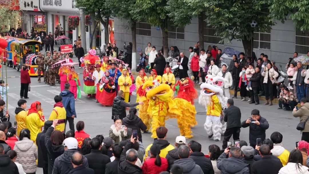 觀眾熊苗苗:很遠(yuǎn)就被鑼鼓喧天的場景給吸引了,看到有很多隊(duì)伍在演出,有年紀(jì)大的叔叔阿姨,也有很小的弟弟妹妹。這個(gè)場景真的非常熱鬧,讓人看著很開心,年味十足。