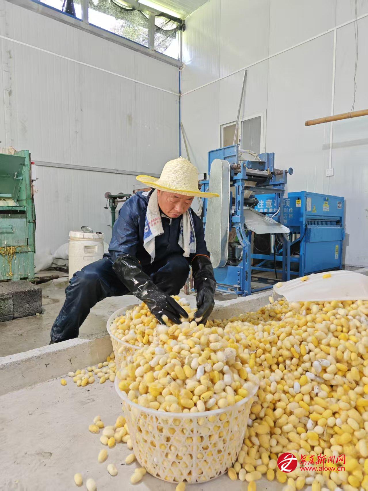 “以前養(yǎng)蠶全靠經(jīng)驗(yàn),溫濕度把控不好,蠶繭產(chǎn)量低?,F(xiàn)在有了智能設(shè)備和技術(shù)指導(dǎo),養(yǎng)蠶更輕松,收入也更高了。”李家河村養(yǎng)蠶大戶王興義感慨道。作為產(chǎn)業(yè)帶頭人,他投資200余萬元成立家庭農(nóng)場(chǎng),配套建設(shè)標(biāo)準(zhǔn)化養(yǎng)蠶室和加工廠房,引進(jìn)滑輪升降式省力化蠶臺(tái)、自動(dòng)化養(yǎng)蠶設(shè)備,實(shí)現(xiàn)了從種養(yǎng)到加工的全鏈條升級(jí)。